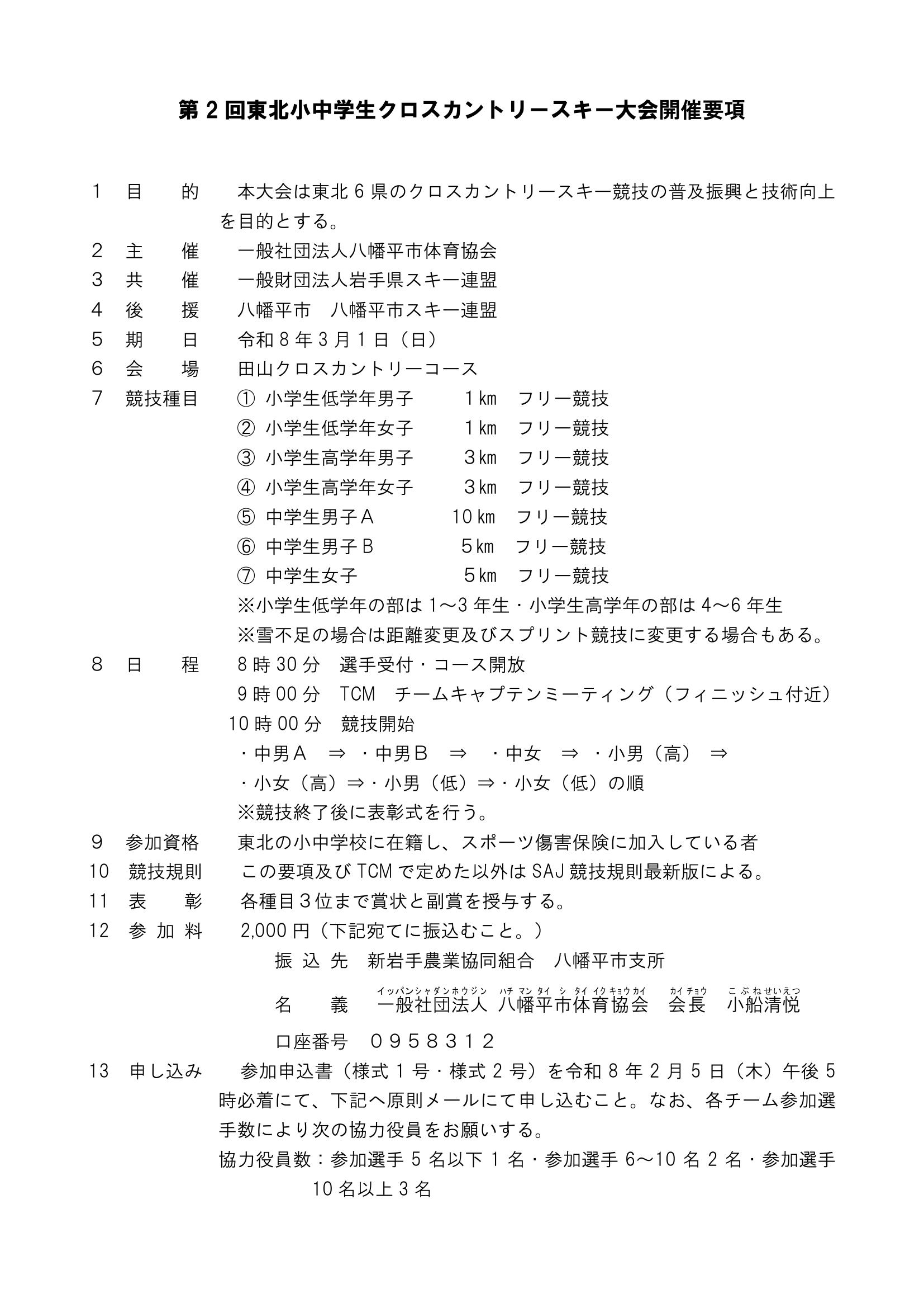| 事業名 | 第2回東北小中学生クロスカントリースキー大会 |